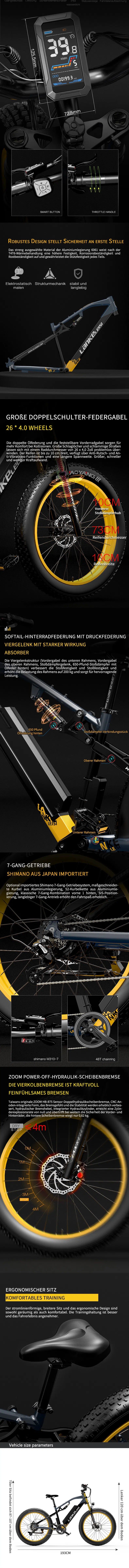 • 26 x 4,0 Zoll dicker Reifen, besserer Grip.