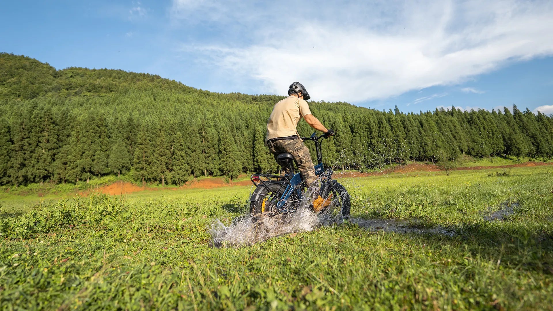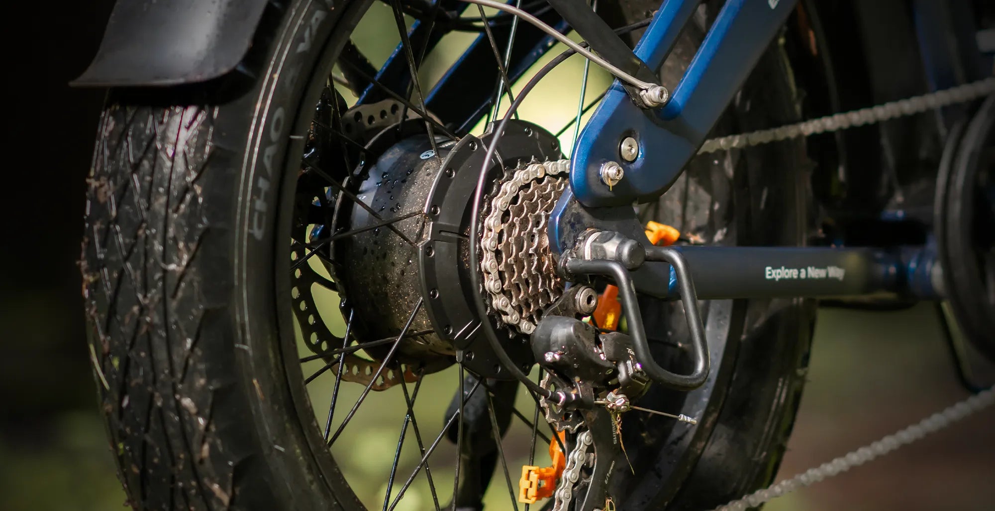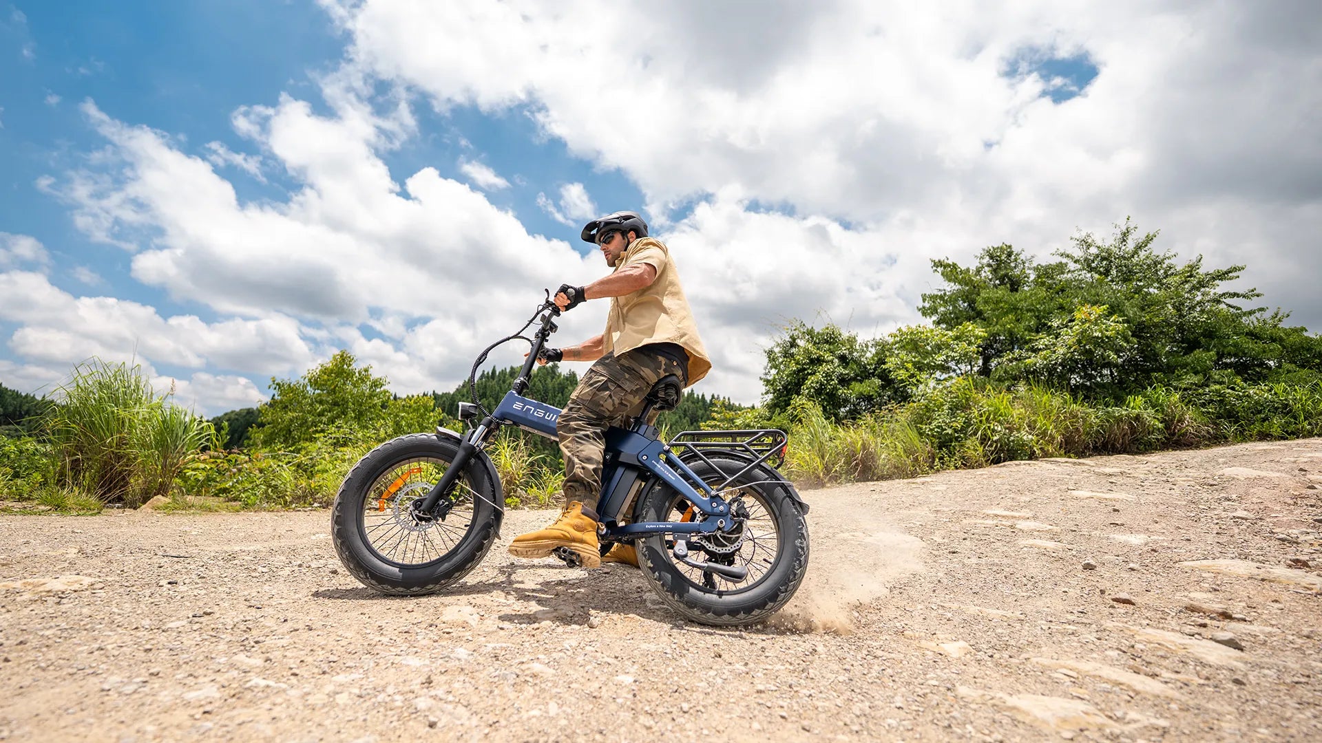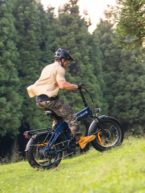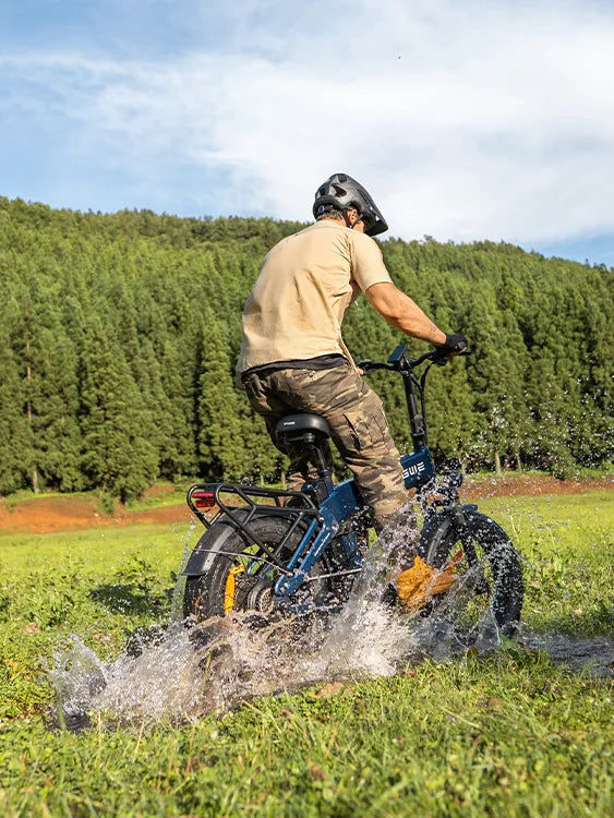 The wide fat tires provide excellent grip and shock absorption, ensuring a smooth ride on city streets, gravel paths, and light off-road terrain.