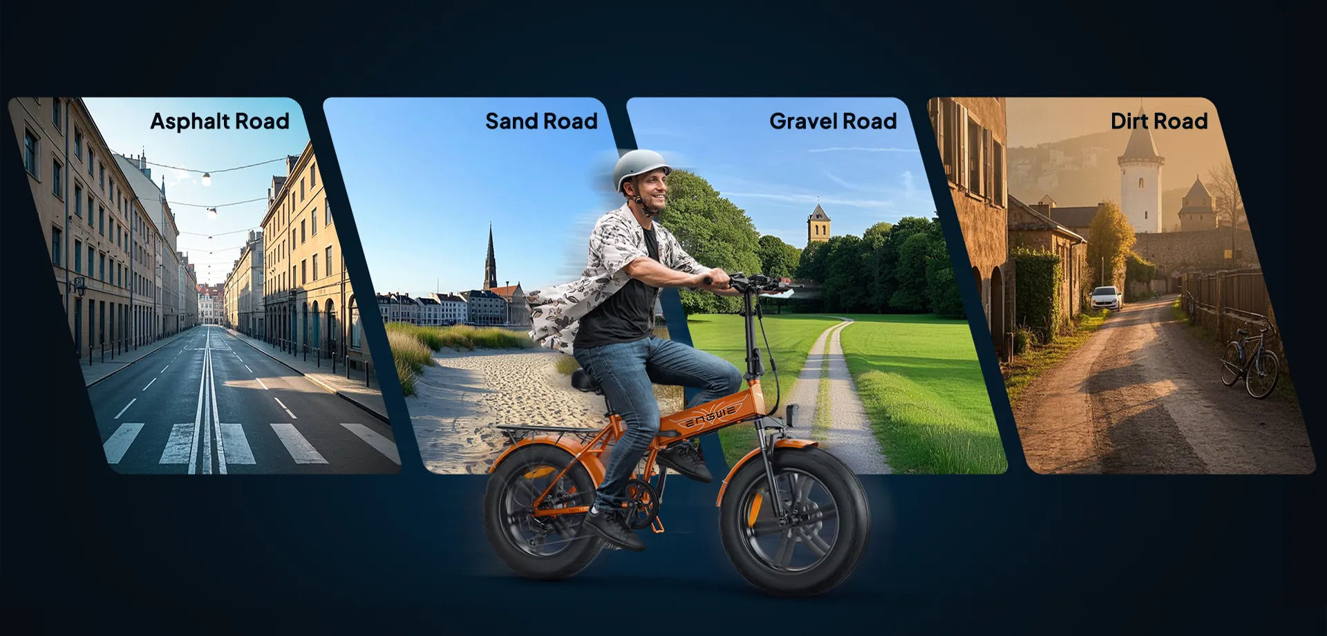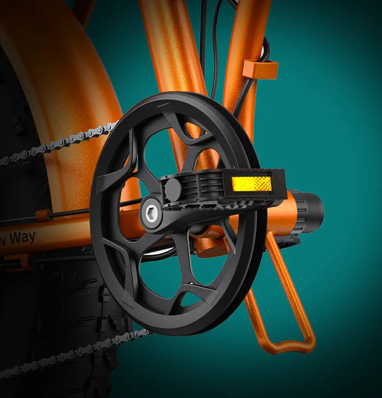 The wide fat tires provide excellent grip and shock absorption, ensuring a smooth ride on city streets, gravel paths, and light off-road terrain.